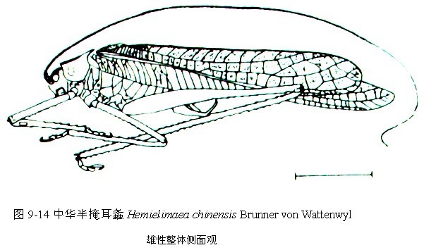 头顶尖角形,侧扁,狭于触角第1节,背面具沟。前胸背板背面圆凸,沟后区较平,缺侧隆线;侧片肩凹不甚明显。前翅稍宽,端缘圆形;R脉具3分枝,Rs脉从R脉中部稍偏前处分出,分叉;后翅长于前翅。前足基节缺刺;前足胫节背面具纵沟和背距,内侧听器为封闭形,外侧听器为开放型...